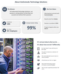 Andromeda provides that team with a comprehensive suite of services that evolve alongside technological advancements. It’s a partnership designed to resolve current challenges and anticipate future needs, ensuring that IT becomes a driver of success rather than an obstacle.