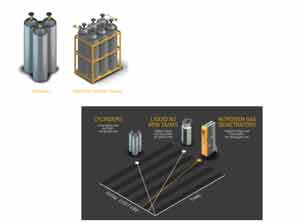 Approximately 36% of nitrogen gas is supplied in high pressure, 230-300 barg, cylinder format, via individual bottles, or a pack of 10, 12, or 16 bottles, contained within a frame and manifolded to a common outlet, also referred to as aManifolded Cylinder Pallet.